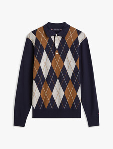 Bring a bold design to daily looks with this rugby collar jumper, featuring a classic argyle pattern on the front and shoulders.