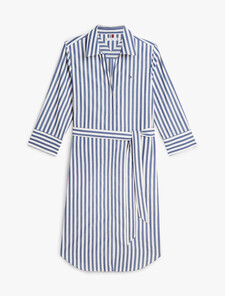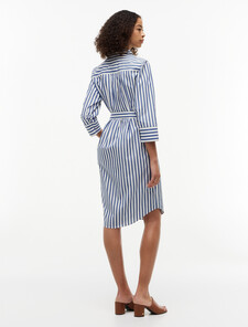 This midi-length shirt dress delivers a smart look with its crisp pure cotton poplin fabric, back pleats and waist-cinching tie belt.