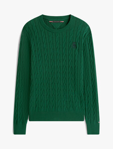 A timeless cable knit pattern brings rich texture to this crewneck pullover sweater in pure cotton, finished with signature Tommy Crest embroidery.