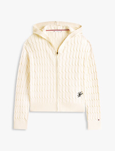 A timeless cable-knit design lends this everyday wardrobe staple a feminine touch. Crafted from pure cotton, the hooded jacket is finished with TH Monogram embroidery for a signature look.