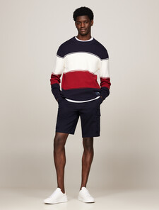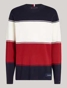 Bring vibrancy to your layering with this jumper, featuring a mix of smooth and ribbed knits to enhance the colour-blocked design.