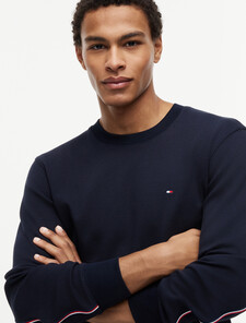 Signature tapes along the sleeves add a sporty feel to this heavyweight pure cotton sweatshirt, finished with ribbed collar, cuffs and hem and a Tommy flag embroidery at chest.