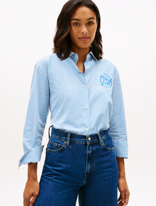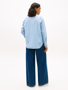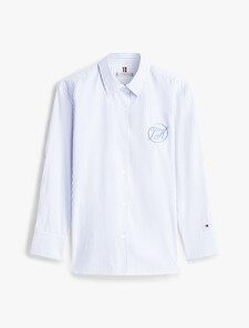 Crafted from pure cotton poplin, this staple shirt is adorned with a Tommy Hilfiger script logo at the chest and an embroidered flag on the sleeve for a subtle signature finish.