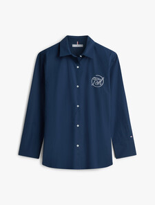 Crafted from pure cotton poplin, this staple shirt is adorned with a Tommy Hilfiger script logo at the chest and an embroidered flag on the sleeve for a subtle signature finish.
