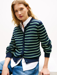 Crafted from pure cotton, this button-through cardigan features an all-over constrasting stripe design, finished with a Tommy Hilfiger flag embroidery on sleeve for a signature touch.