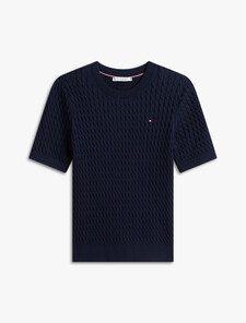 Fine Gauge Cable Knit Short Sleeve Jumper