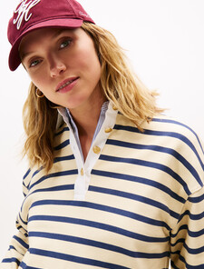 This rugby-inspired sweatshirt is a relaxed style that's complete with branded gold-tone buttons on the placket for an elevated touch.