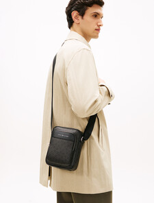 Just the right size for essentials, this compact reporter bag is complete with pockets inside and out while showcasing repeat flag branding.