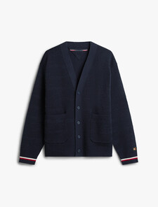 Crafted from a cozy wool blend, this cardigan makes a style statement with its bold logo jacquard detailing.