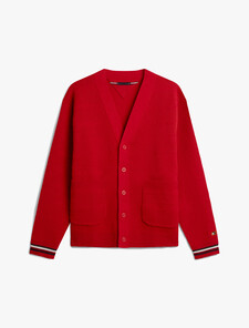 Crafted from a cozy wool blend, this cardigan makes a style statement with its bold logo jacquard detailing.