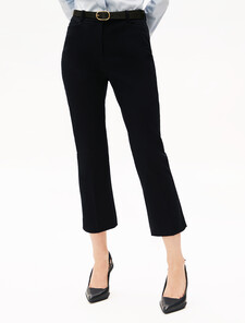 Crafted from a super stretch cotton blend, these twill pants embrace your upper waist and flatter your silhouette with their flared hems.