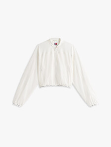 This bomber jacket features a practical water-repellent finish, while elasticated trims decorated with repeat logo tape ensure a flattering fit.