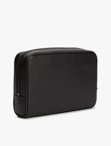 Carry your day-to-day essentials in style with this compact pouch, featuring a premium pebble-grain finish and a metal logo.