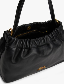 This sleek crossbody bag in soft leather is elevated by its gathered design and a refined logo plaque on the front.