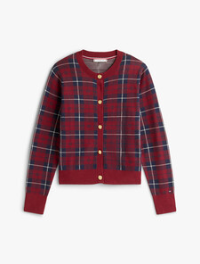 Tommy’s iconic flag motif is woven into a classic tartan, bringing timeless charm to this cotton cardigan. The classic staple is finished with gleaming metal buttons.