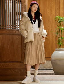 A fresh take on a timeless silhouette. This woven midi skirt pairs refined narrow pleats with a sporty logo waistband, bringing a modern edge to versatile day-to-night styling.