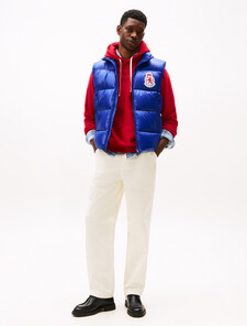 A water-repellent finish, insulating down filling and tall stand-up collar make this shiny puffer gilet a perfect extra layer on chilly days.