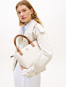 With its removable webbing crossbody strap and TH monogram hardware, this tote bag is a versatile piece with contemporary appeal.